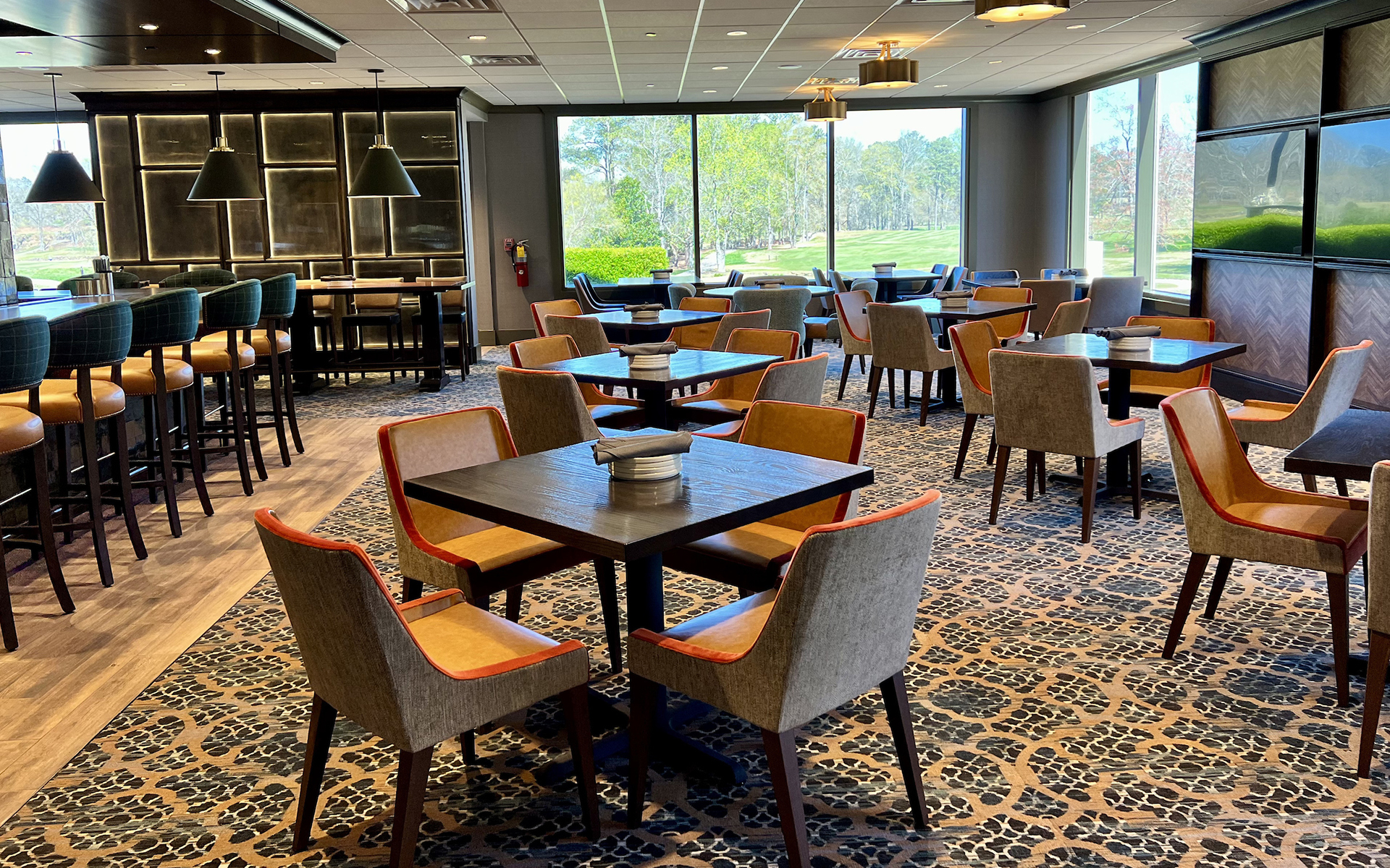 Our vision for this space was to create an atmosphere that combines comfort and elegance, ensuring it became the perfect setting for socializing, relaxation, and culinary enjoyment for you and your guests to enjoy. Warm, earthy tones, soft lighting, and cozy seating arrangements will greet you in the new restaurant. The revamped menus feature a diverse range of dishes, from gourmet options to classic favorites. Whether you're in the mood for a hearty post-game meal or a light and healthy option, there is something for every palate.