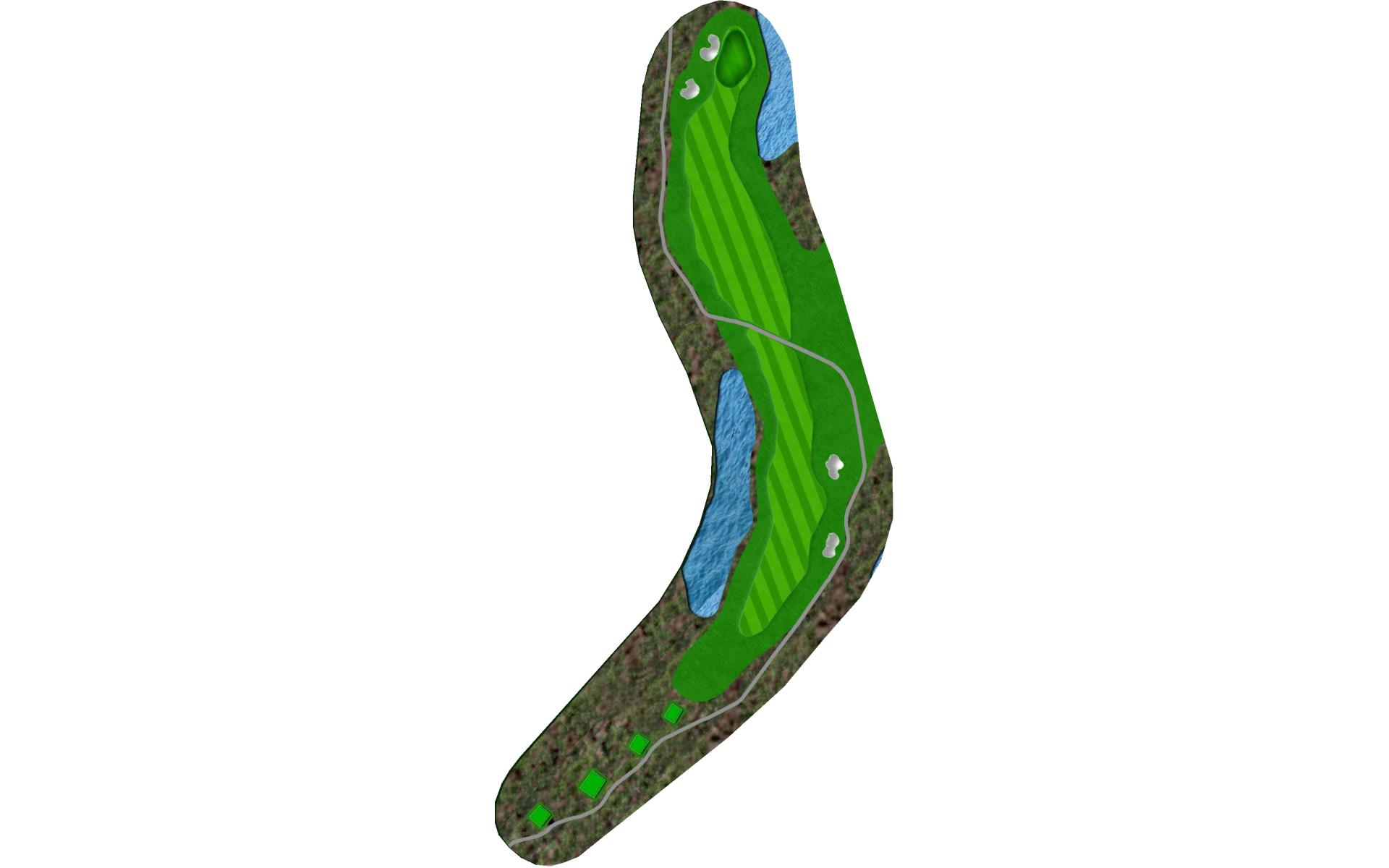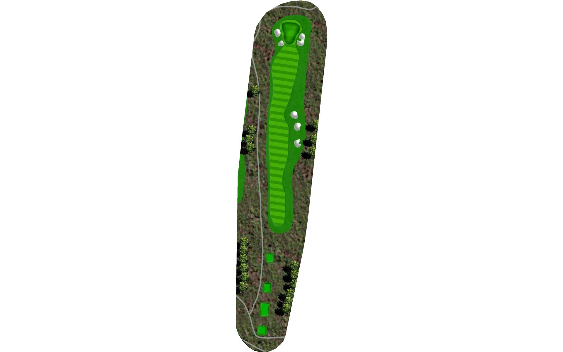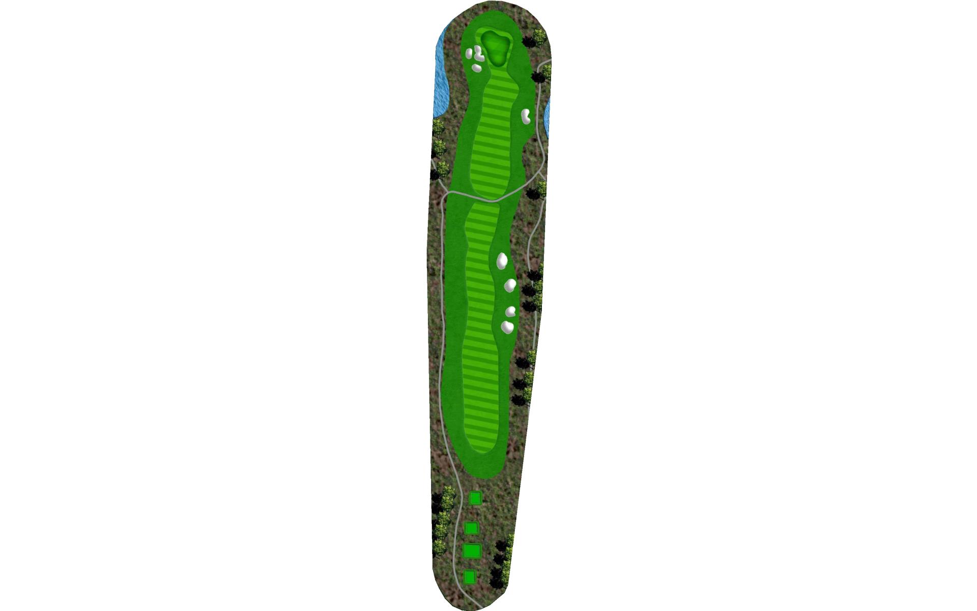 A tee shot that lands near the 150 post will allow players to miss the fairway bunkers on the right and be left with the best approach. The green slopes back-to-front and left-to-right. |