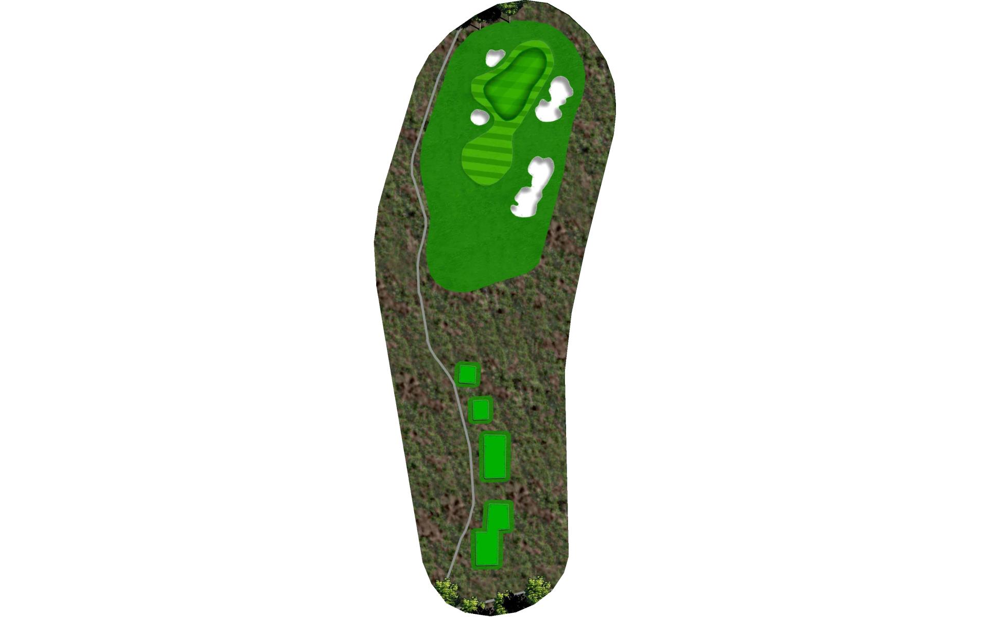 The third is a par 3 with a semi-blind tee shot. The green is multi-tiered, so club selection is important to get it close. |