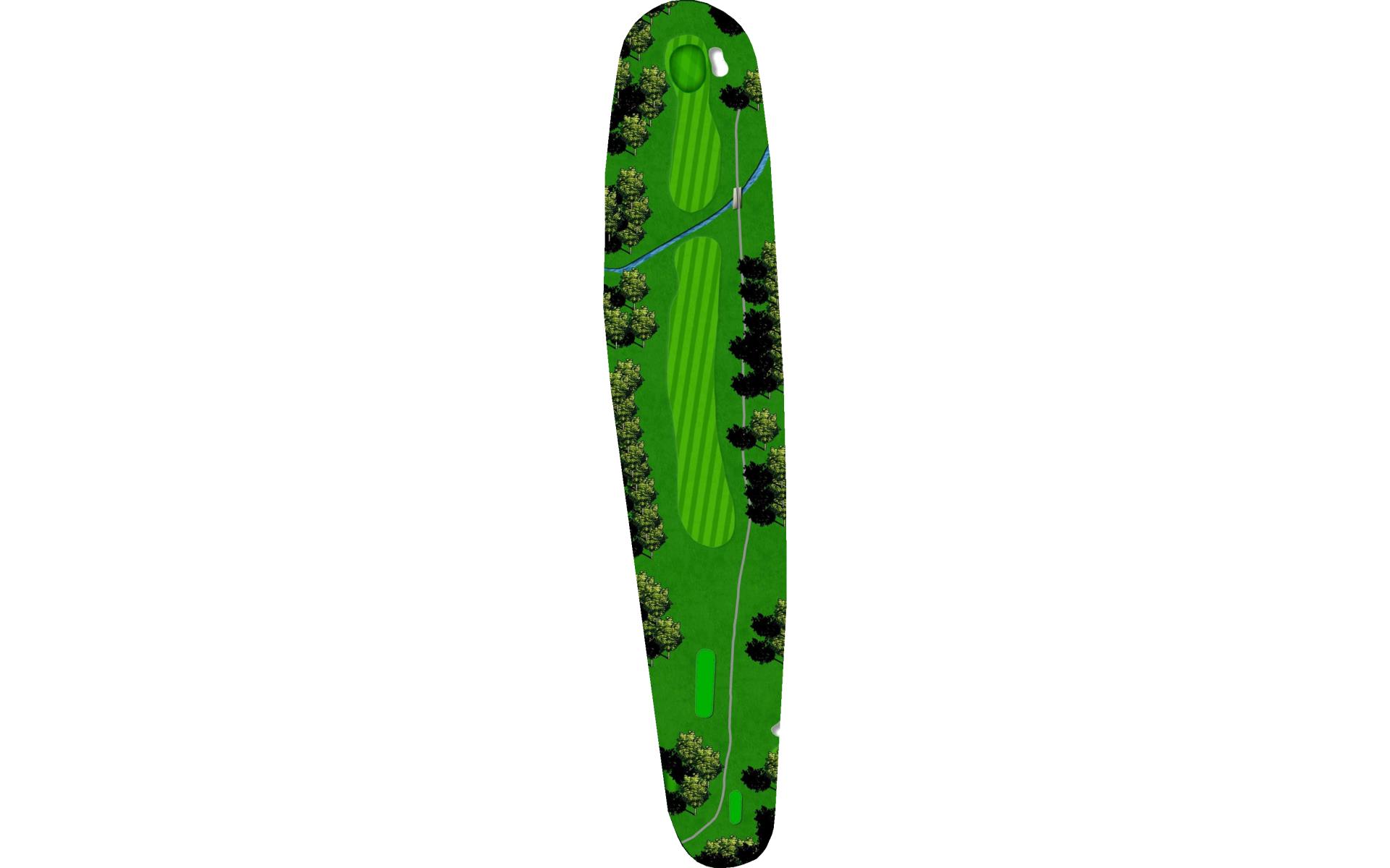Number four for some is reachable but it has to be done with such precision a drive that leave us with a full swing into the green is the percentage play. With no real trouble around or behind, short of the green on this hole will put a not so friendly number on a score card. This green slope from back right to front left almost enticing the creek in front to grab a golf ball just a little short. Middle of the green on the good side of the pin will make a much better number.