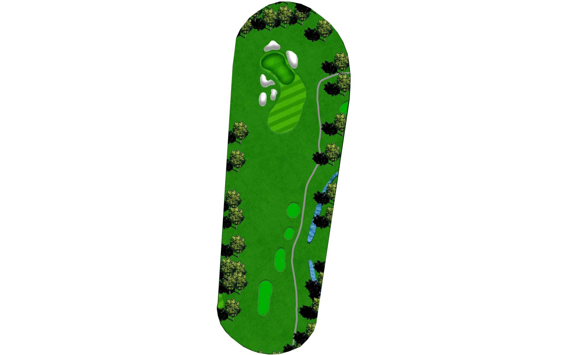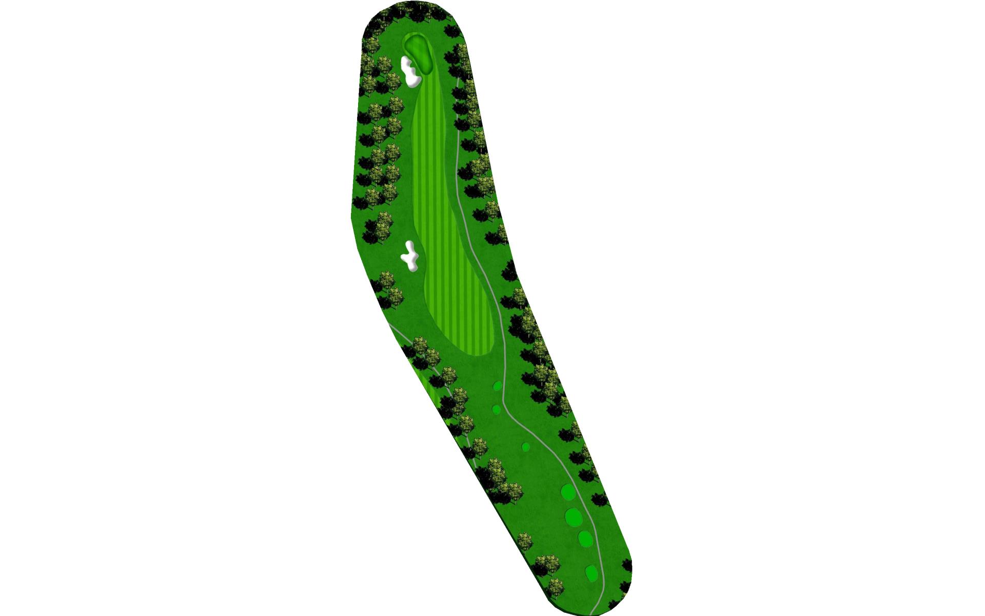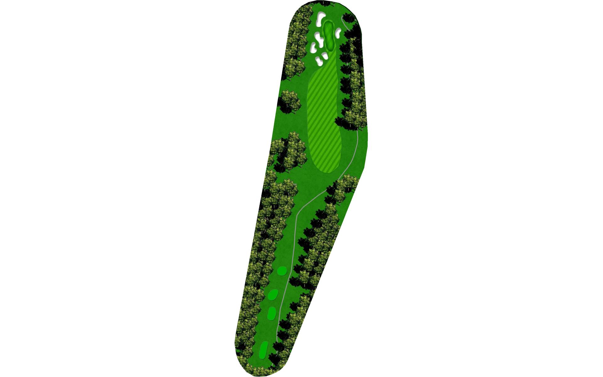 The home hole. Avoid the big tree on the right and the bunker on the left by ripping it down the middle. With a good drive you could have 190 to 150 yards for your approach. This is the biggest green on the course. Your approach is so important to this undulating green.