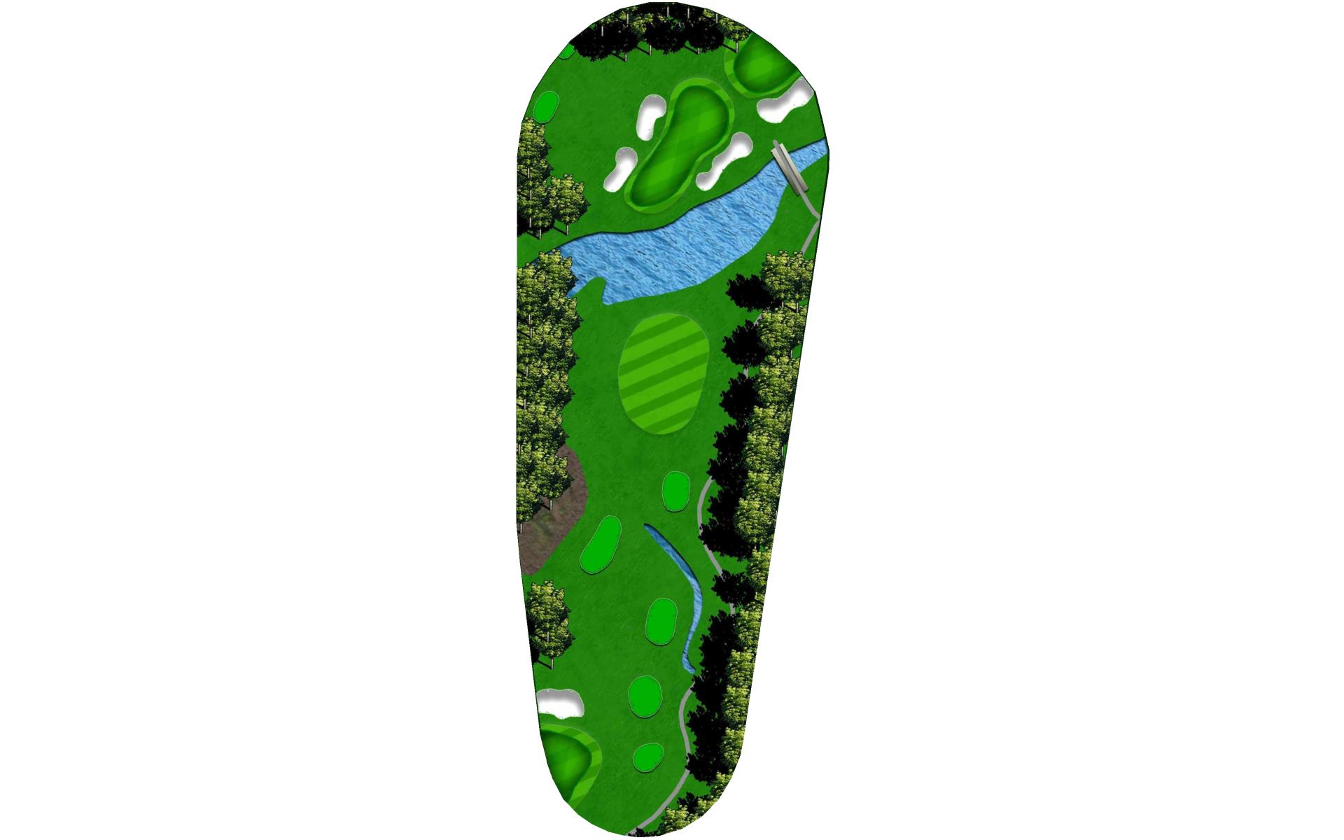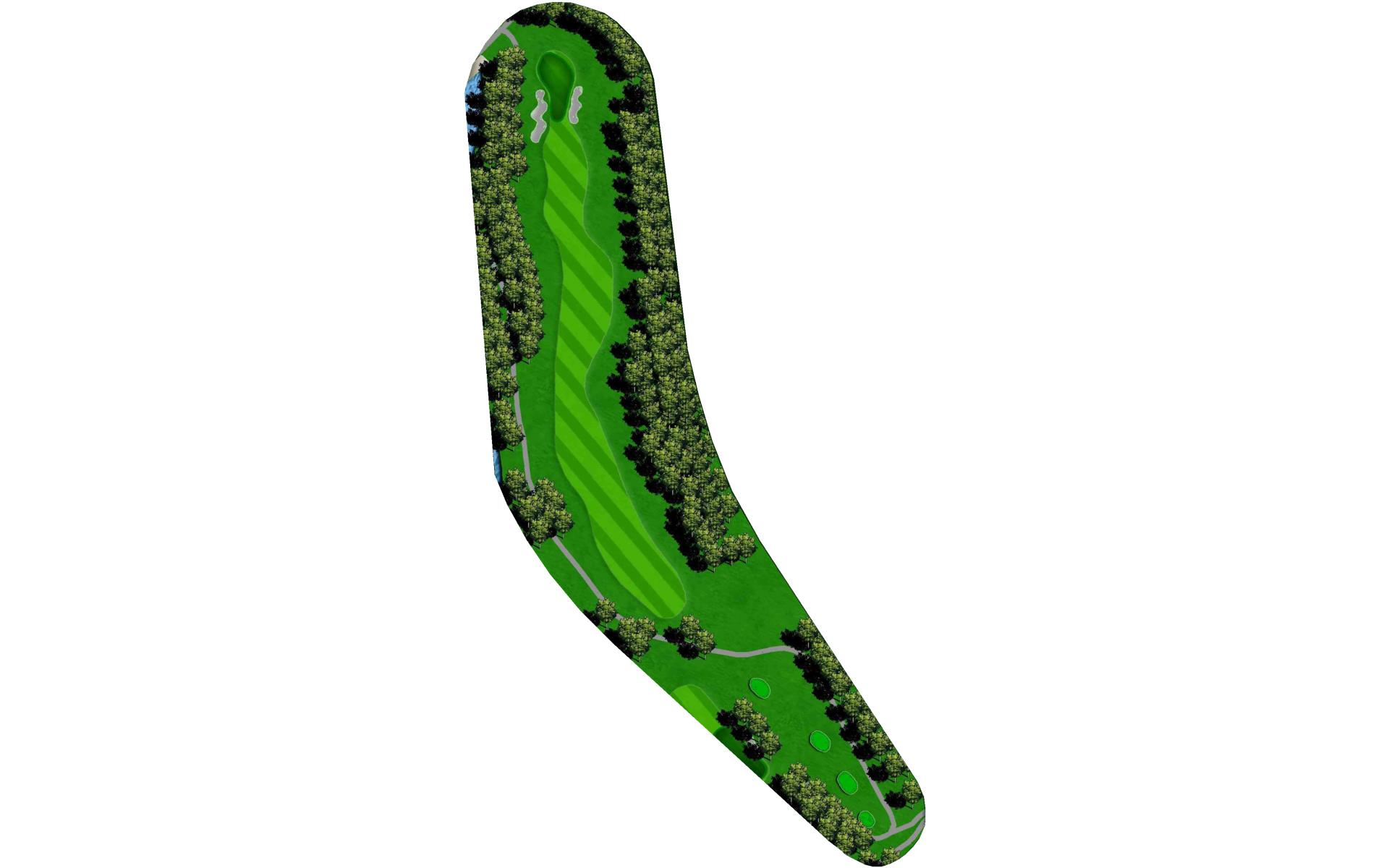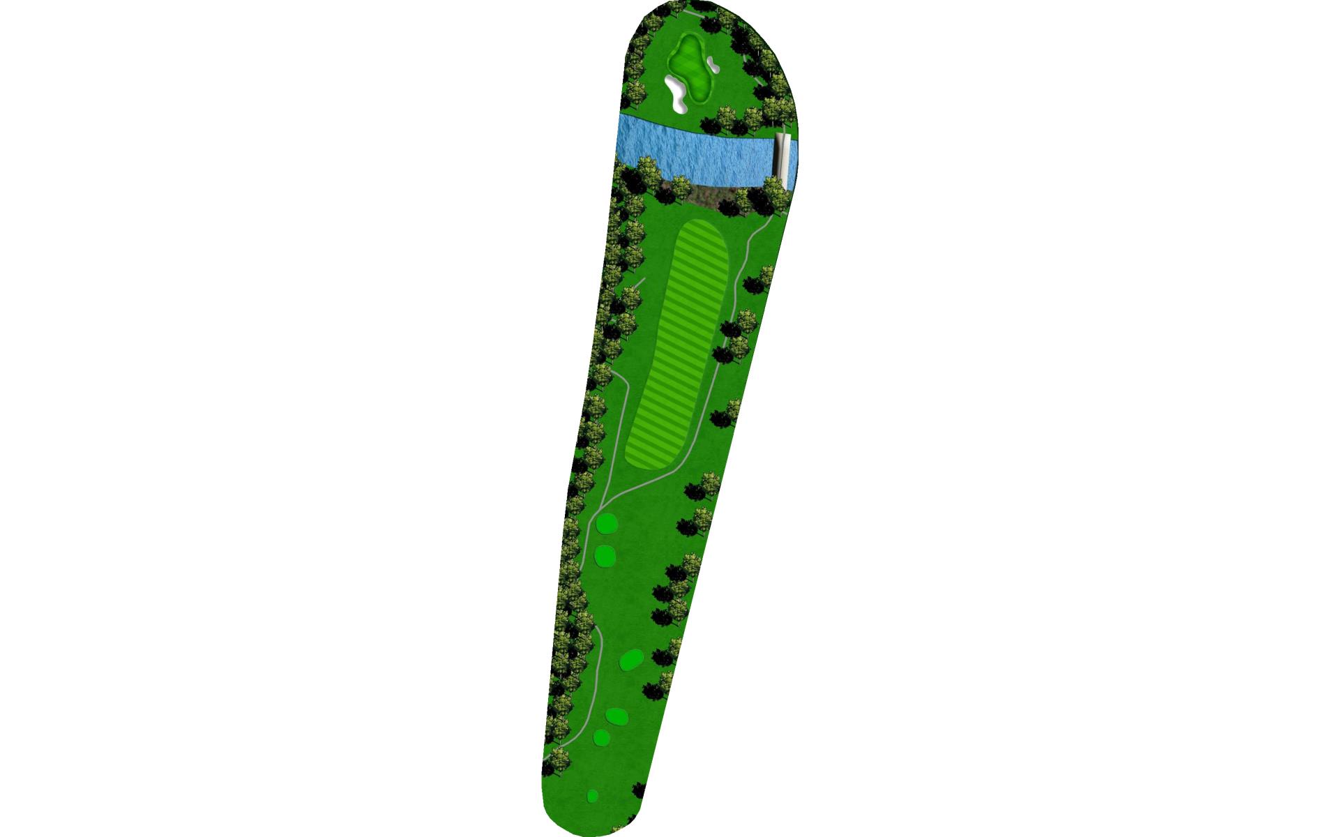 The home hole. Avoid the big tree on the right and the bunker on the left by ripping it down the middle. With a good drive you could have 190 to 150 yards for your approach. This is the biggest green on the course. Your approach is so important to this undulating green.