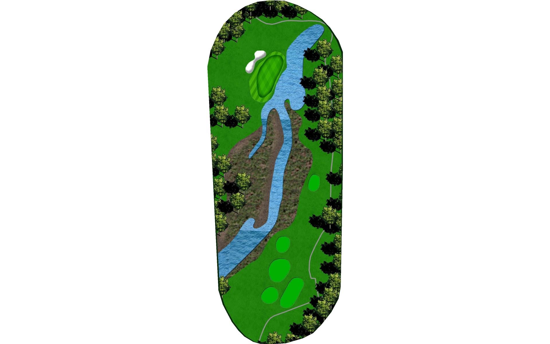 The big hitter can leave the Driver in the bag. Three or five woods will leave you within 150 yards of this undulating green. Take aim at the pin.