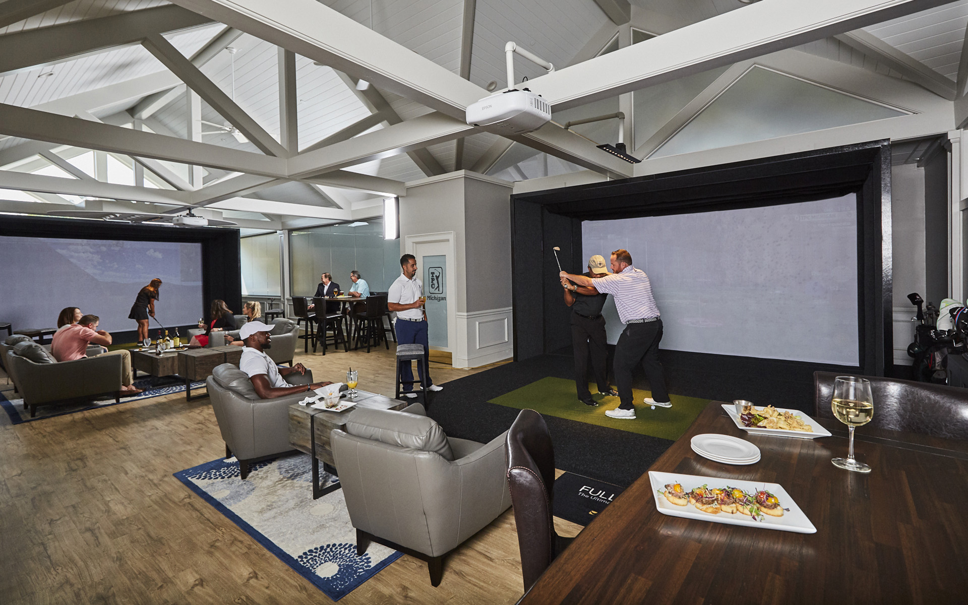 Enjoy our golf and social hub with great food, craft drinks and simulated golf games. Play a wide range of virtual games – golf skills not required! Our year-round Golden Bear Lounge is perfect for hosting parties, events and more.