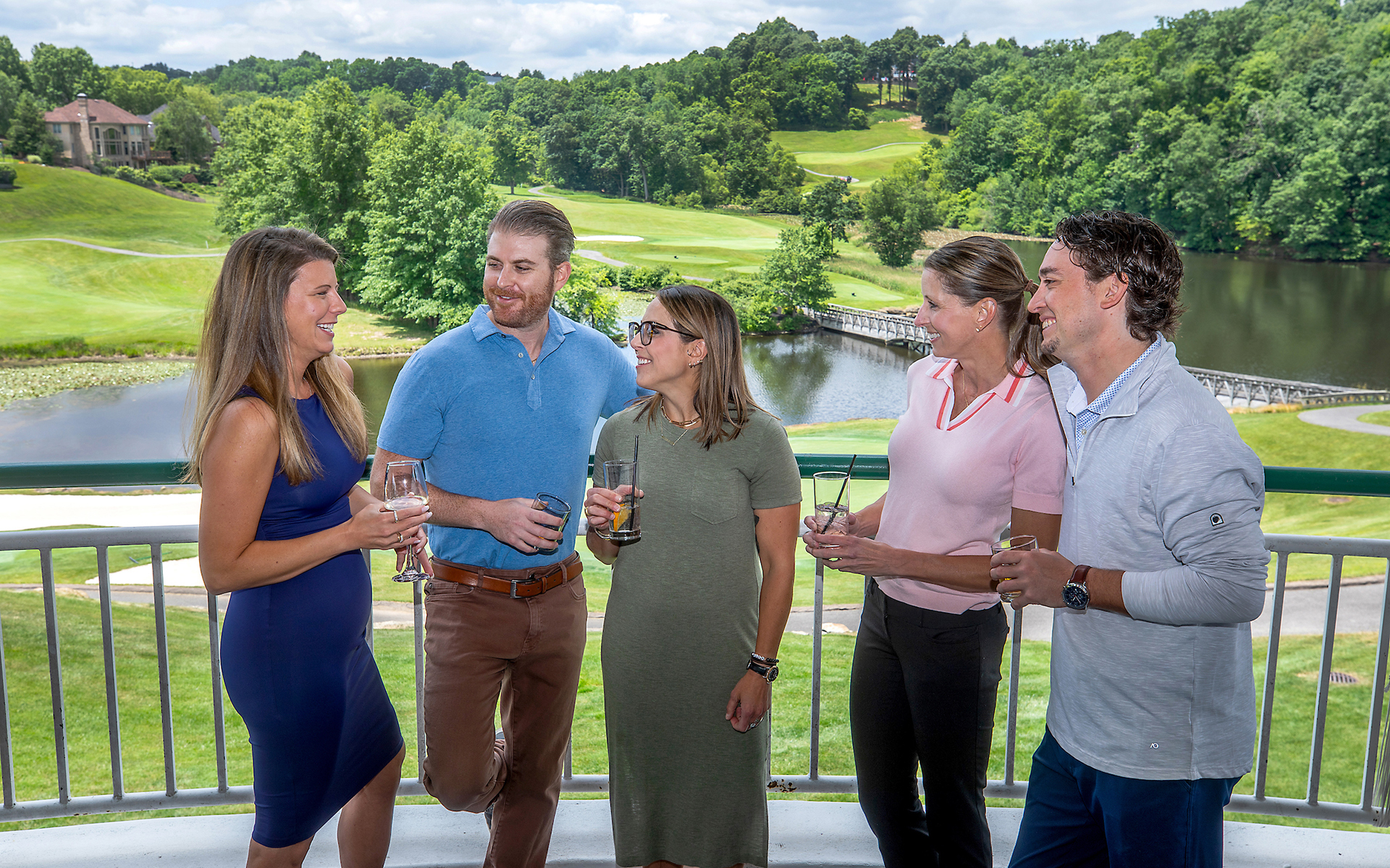 Women may wear a Golf Shirt with a fashion or mock turtleneck collar that has short or long sleeves. Golf Shirts or Golf Dresses without sleeves must have a traditional collar. A Sweater, Pullover, or Fashion Hoodie may be worn as a layer over an acceptable Golf Shirt. Slacks, Capri Pants, or Fashion Joggers are permitted, provided they are of appropriate fabric that is not athletic-wear or denim. Golf Dresses, Shorts, Skirts, or Skorts may be worn at an appropriate length that is not shorter than mid-thigh. Golf Shirts or Golf Dresses must have a closed back. Leggings may be worn only as an additional layer underneath Shorts, Skirts, or Skorts, not on their own. Hats or visors may be worn only with the bill facing forward and should be removed when entering Arbor Grille. Non-Metal Spiked or Spikeless golf shoes are appropriate footwear.Examples of Unacceptable Attire: