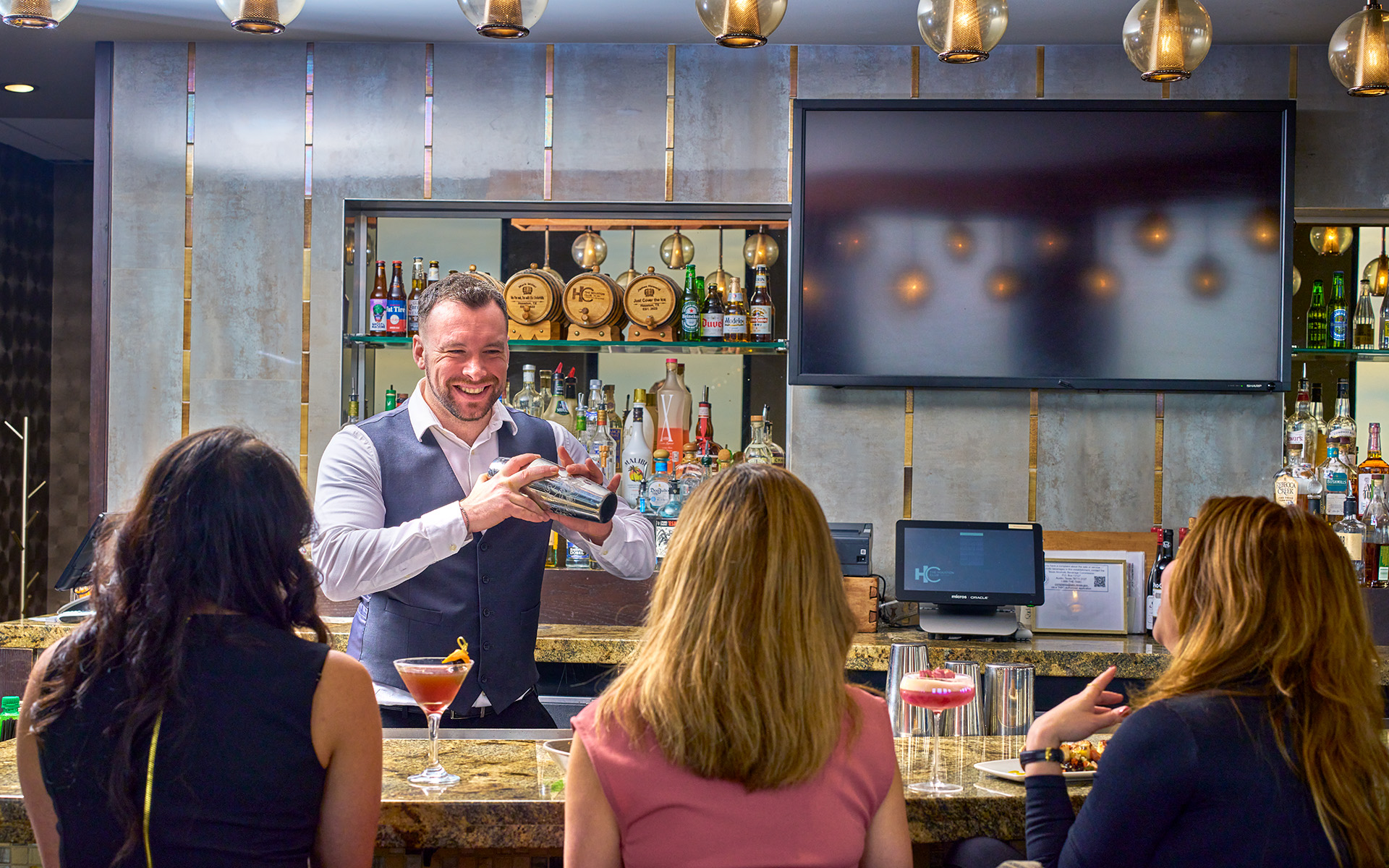 - Upscale lounge and bar with exquisite dining, collaborative room, wine lockers